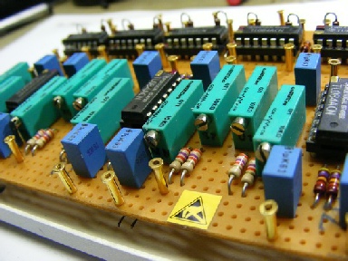 Die Leiterplatte dient als Wandler und ist eine Einzelstückanfertigung. Diesesc Modul wandelt übeliche HiFi Komponenten und deren unsymmetrische Pegel auf symmetrische Signale um. Jedes Signal kann genau mit einem Spindeltrimmer auf den nachfolgenden Eingang abgeglichen werden um Pegelsprünge zu vermeiden. Zum Einsatz kamen rauscharme Operationsverstärker sowie hochwertige Folienkondensatoren.