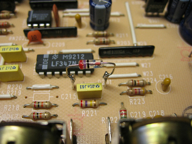 Bei der Erzeugung der Oberwellen ging im Aphex 104 (Exciter mit Big Bottom Prozessor) einen preiswerteren Weg. Als Oberwellengenerator werkelt hier eine stinknormale Silizium Diode vom Typ 1N4148 oder 1N914. Mit gezielter Vorspannung wird eine Sinuswelle mit Oberwellen angereichert -