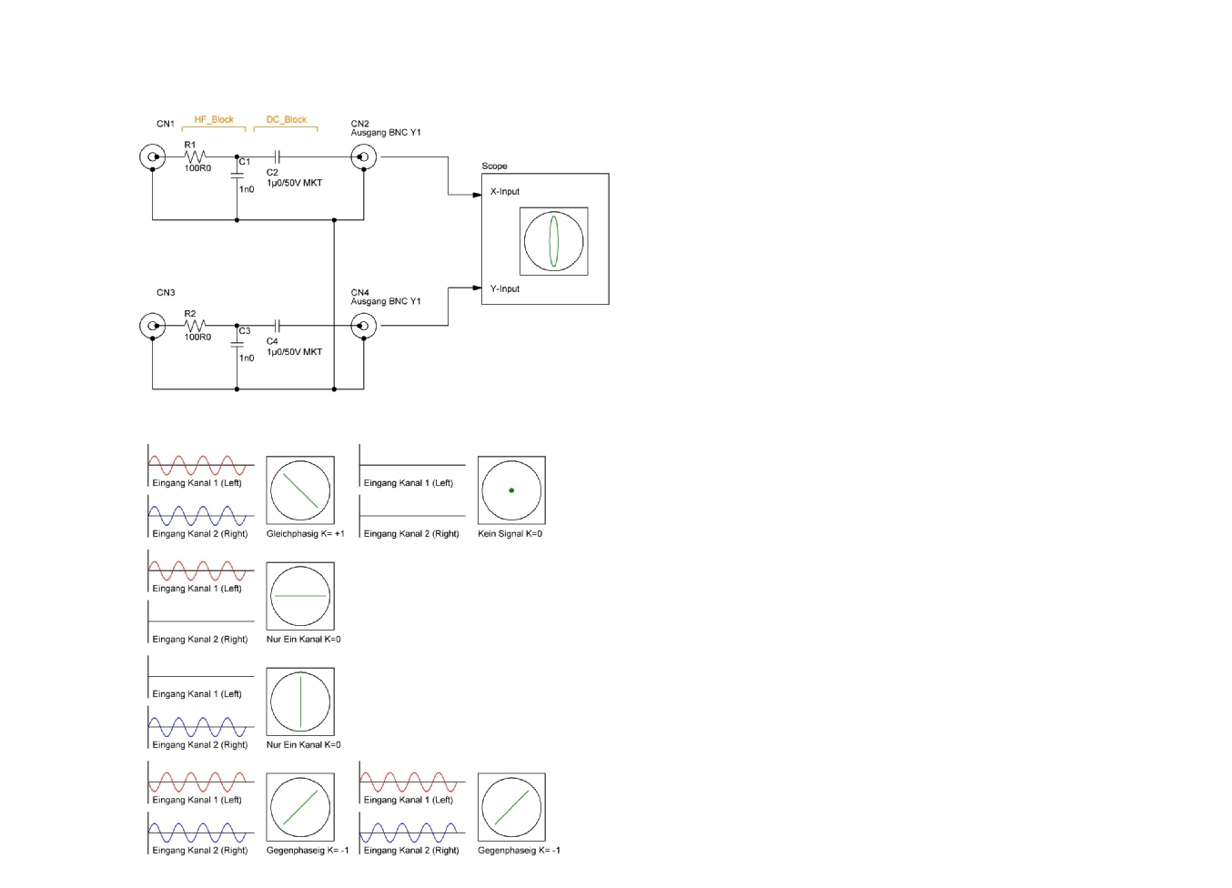 Goniometer zur Messung von Stereodignalen / Phasenmessung mit Oszilloskop